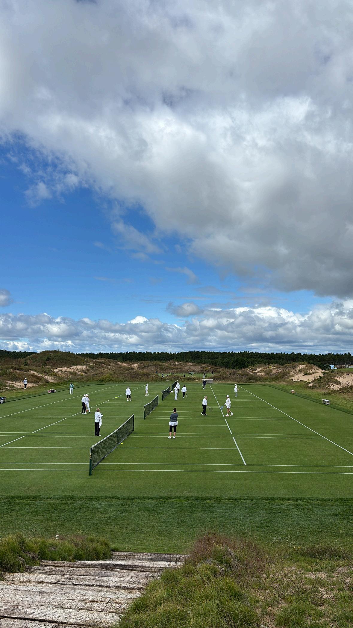 In the heart of Wisconsin are Sand Valley’s 16 grass tennis courts. The courts are surrounded by towering prehistoric sand dunes in a tennis setting like no other. The courts have drawn in players from around the country to experience what it is like to play on the original surface of tennis. There was a time that 3 of the 4 majors were played on grass. Today, Wimbledon remains the only major to keep this tradition. In the US, grass courts make up far less than even one percent of all the courts in the country.