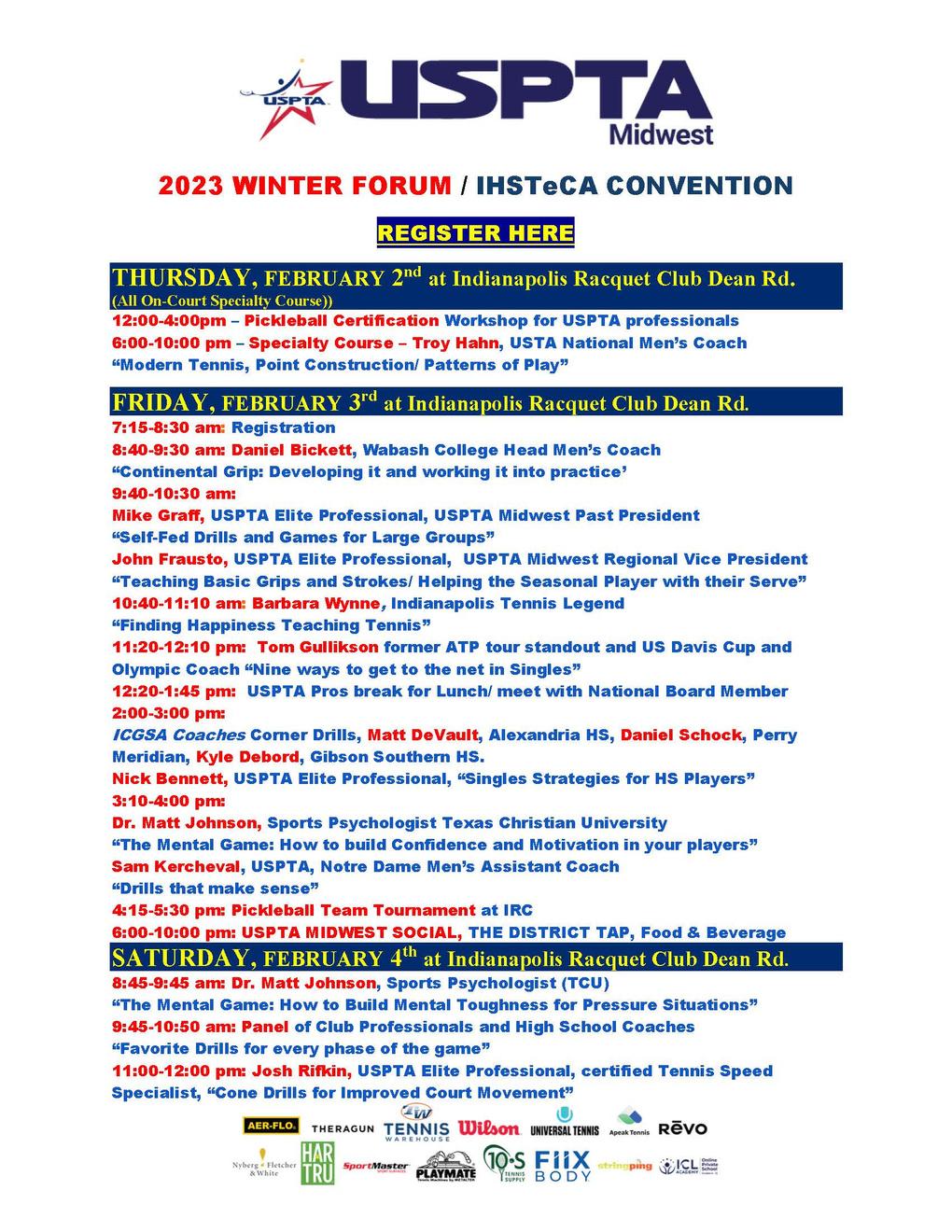 USPTAWINTERFORUM/IndianaHighSchoolTennisCoachesConventionIndianapolis RacquetClub,8249DeanRd,Indianapolis,IN
