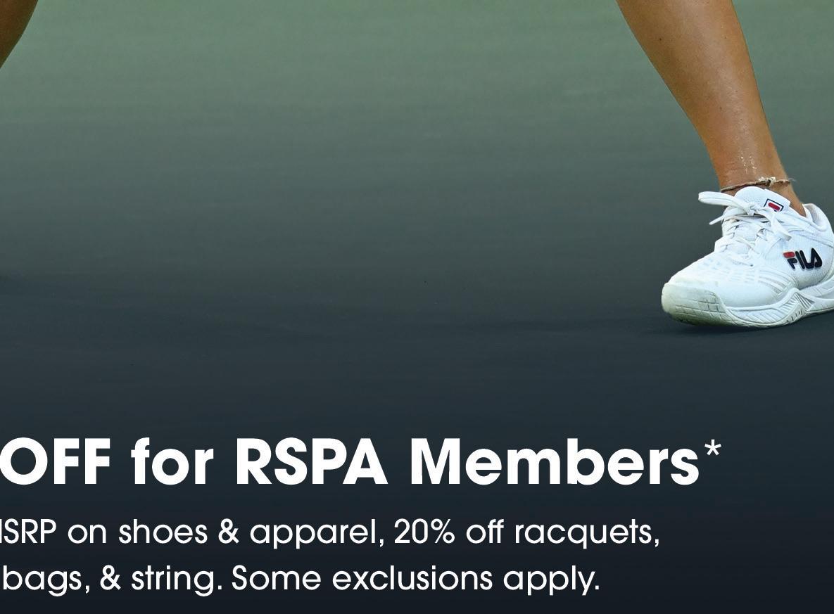nization that offers networking opportunities, community building, and continuous learning.” Professional development through continued education also plays a key factor in developing our professionals as well as sustaining successful careers. Former RSPA president and tennis coach developer Feisal Hassan encourages both applicants and certified members to stay at the forefront of the industry. “Education is key,” he said. “Our industry is evolving into a racquet sports industry and professionals must seek knowledge in other sports like pickleball, padel, platform tennis and squash. Consumers are looking for well-rounded offerings and clubs and coaches must align with these demands.”