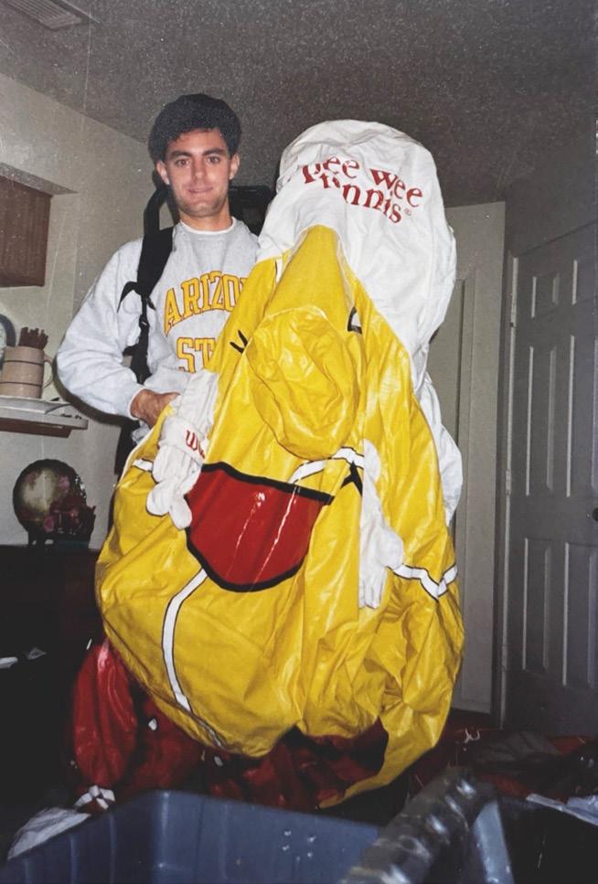 Sports Professionals Association (RSPA) remains strong. Our coach developers serve as our frontline representatives, connecting new members with our 14,000-strong national network. They do more than teach—they mentor, inspire and help professionals see a lifelong future in this industry. Similar to racquet sports sales reps promoting balls, racquets and apparel, our coach developers deliver top-tier educational workshops while fostering connections. Nike created a similar approach with their “Ekin” reps (Nike spelled backward), who specialized in educating customers about shoe technology and promoting the brand. However, unlike corporate reps, our coach developers focus on something much more personal—shaping careers, not just selling products. My time at Wilson gave me firsthand experience of this model. We had Tech Reps who functioned as the educational arm of the company, constantly hosting demo days and grassroots events to showcase new products and technology. As a matter of fact, I found a picture of me about to don the mr. Pee Wee costume to do a Wilson event in Baton Rouge back in 1992.