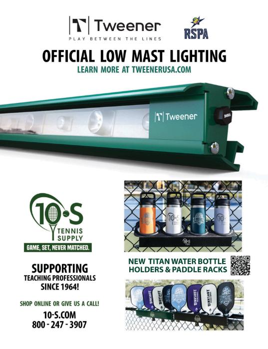 Tom Daglis is certified as a RSPA Master Professional by the Racquet Sports Professionals Association, a certification that is shared with less than 1 percent of the RSPA membership worldwide His extensive involvement with the RSPA has included serving as National President for the RSPA from ’09-‘13 and the Southern Division in '95-'96 He currently serves on the RSPA Executive Committee as a National Past President.
