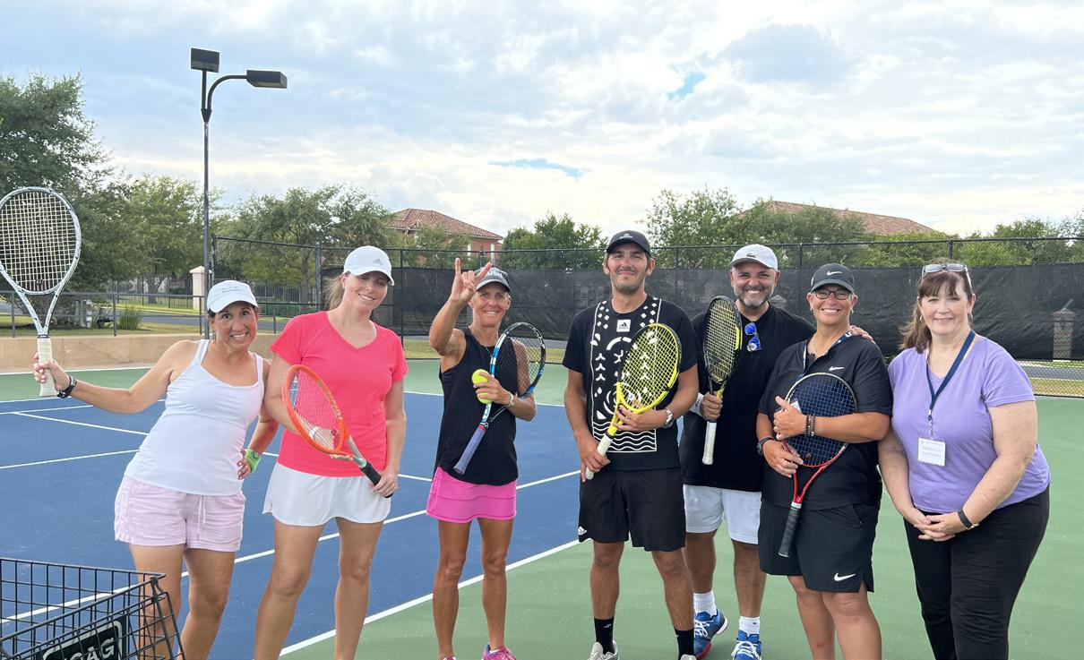 The USPTA Texas Summer Retreat was held August 12 - 13, 2022 at Lakecliff Racquet Club in Spicewood, Texas. The event kicked off on Friday morning with our president, Matt Watson, speaking on Practical Doubles Drills for Club Players, which was followed by a poolside cookout. We rounded out the day with a tennis drill share, golf, and an evening event at 5 Soul Wine.