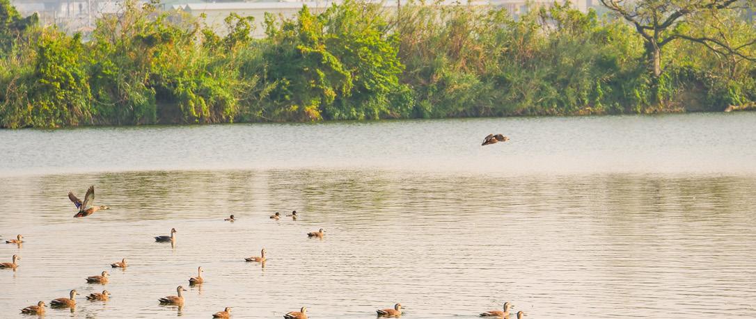 It was called Niujiaobei, which was formed during the Qing Dynasty and completed during the Japanese occupation. During the period of the R.O.C, the left and right sides of the pond were nearly half filled and used as farming land. In the early days, most of the people in Minnan were rice farmers, and they were converted to lotus flowers with higher economic value. The pond is kept in a primitive status, and there are also a large number of red bladder ducks inhabiting, which shows the ecological richness of the pond.