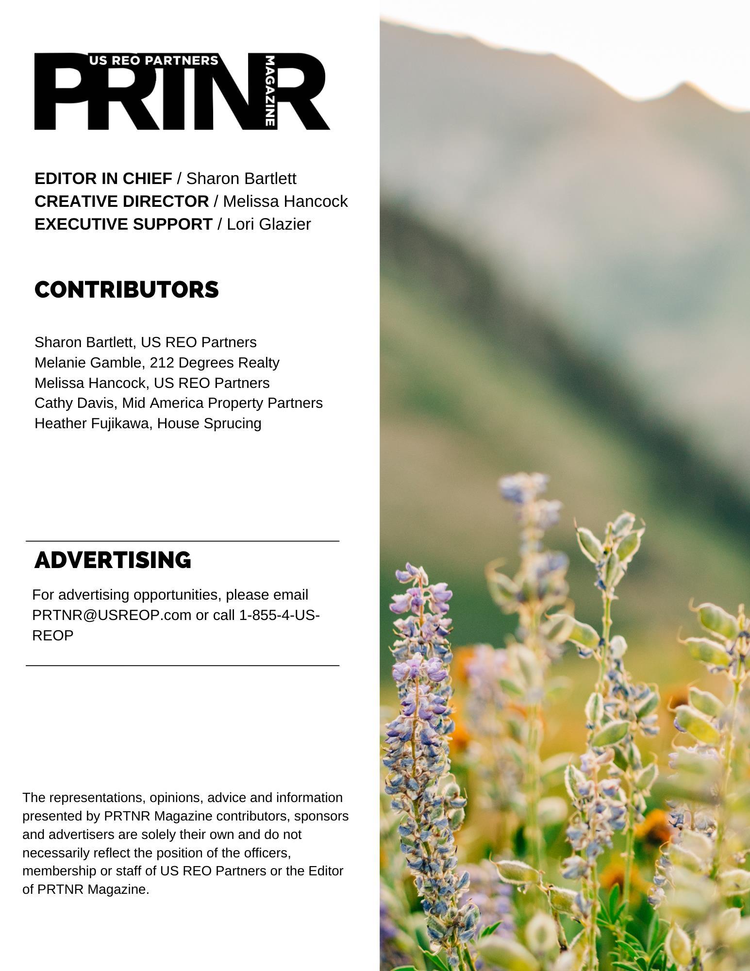 PRTNR Magazine is the official publication of US REO Partners. PRTNR is a digital publication published four times a year. PRTNR is focused on delivering cutting-edge pre- and post-foreclosure content crafted, created, and curated by US REO Partners’ clients, members, and invited authors. The magazine offers feature content covering, REO, legal, title, technology, and other default-related content that educates clients and promotes members.