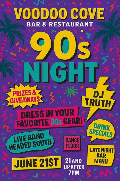 Public · Anyone Get ready to throw it back! Join us at Voodoo Cove Bar & Restaurant for 90s Night on June 21st!