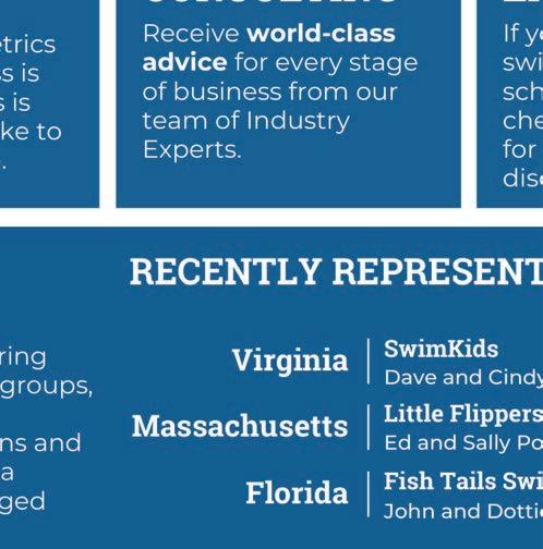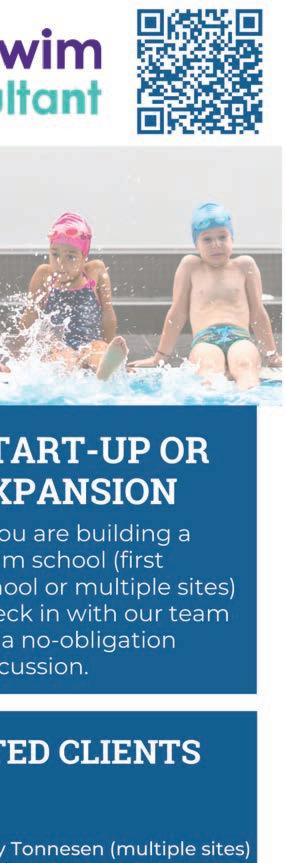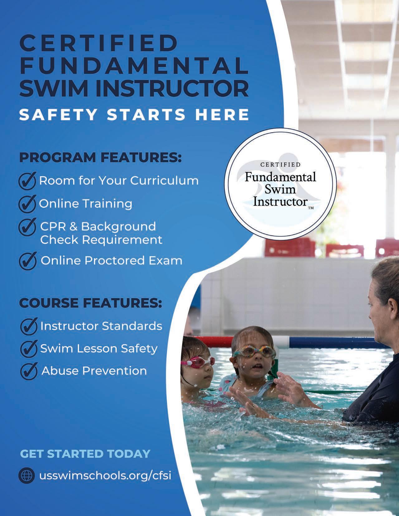 I think we o er a lot of great educational opportunities. Our members have generously contributed to the development of great online programing like our Infant Toddler, Special Abilities, Movement and Brain, Play with Purpose, and Preschool Course. ese o er you the opportunity to provide consistent training to your sta with content designed by swim school owners and instructors, for swim school sta . I’m most excited about our Certified Fundamental Swim Instructor certification. It’s the first of its kind certification opportunity in the learn to swim industry that not only offers a solid foundation for swim instructors in a variety of subject areas, but also can help elevate the career of swim instructors by validating and providing credibility to your excellent instructors. Our in-person Workshop and National Conference are another wonderful opportunity for members to truly live our mission of bringing passionate people together to share and inspire one another. We have heard from members that have attended other conferences how much more they appreciate the quality of our programming and attention to detail to deliver a high quality experience. If you have not tried one of our online offerings or attended a workshop or national conference, I encourage you to make the investment in yourself, your staff, and your business!