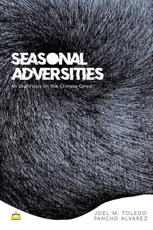 About the book: Joel M. Toledo and Pancho Alvarez collaborate in Seasonal Adversities: An Ekphrasis on the Climate Crisis. The book intersects visual and literary art, centering on climate change to raise consciousness through both form and content. Toledo and Alvarez intricately weave together the impacts and devastation caused by the presentday climate crisis. Joel M. Toledo teaches Creative Writing at the University of Santo Tomas. Pancho Alvarez is a visual artist and the founder of Studio Maya.