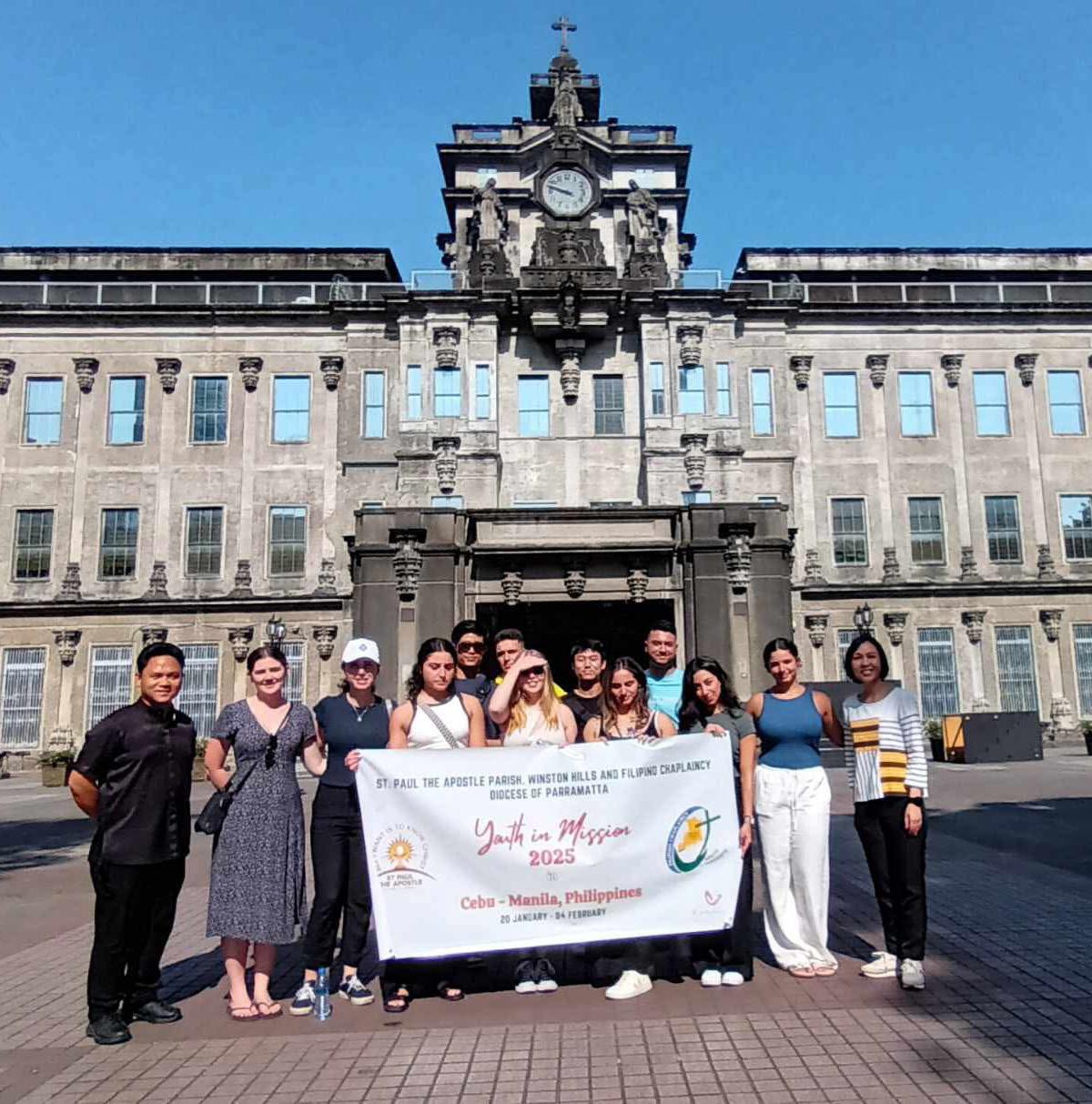 Fr. John Paul Escarlan (second from left), Parish Priest of the St. Paul the Apostle Catholic Parish in New South Wales, and 11 young members of the Diocese of Parramatta in Australia, visited the UST campus on February 2, 2025, as part of their Youth in Mission program. The UST Office of Public Affairs Director Ms. Michaella Lagniton (leftmost) welcomed the group and led a campus tour.