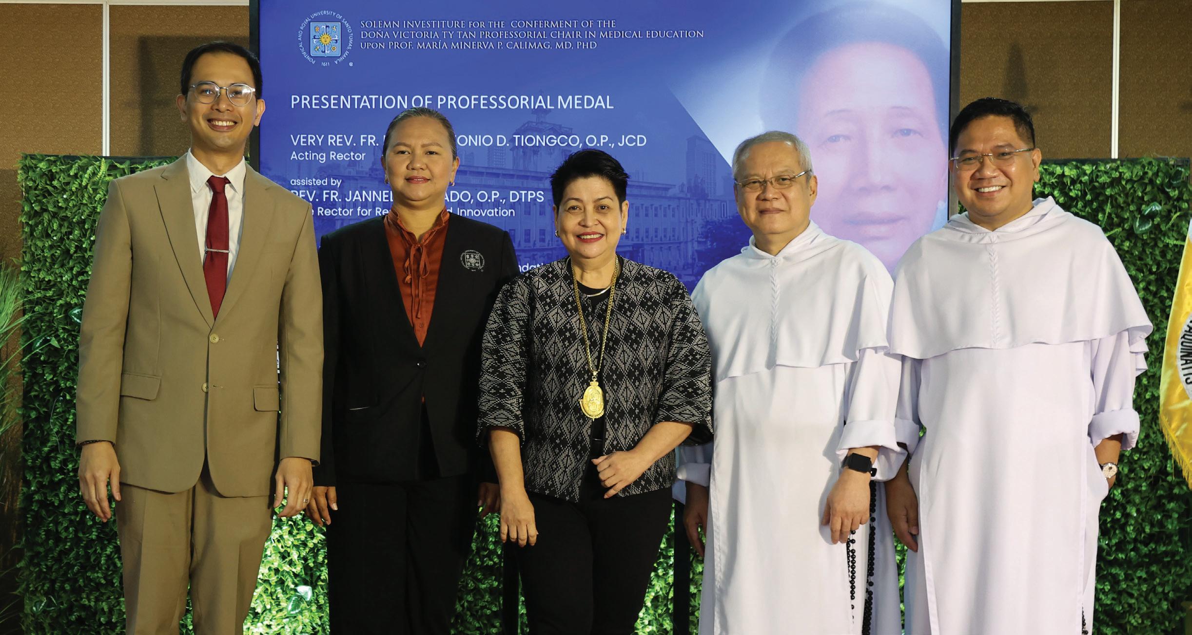 Prof. María Minerva P. Calimag, M.D., Ph.D.., was conferred the Doña Victoria Ty Tan Professorial Chair in Medicine in a solemn investiture held at the Dr. George S.K. Ty Hall of the Bl. Buenaventura García Paredes, O.P. Building on July 19, 2024. The professorial chair is named after Doña Victoria Ty Tan, mother of Dr. George S.K. Ty, who founded Metrobank.