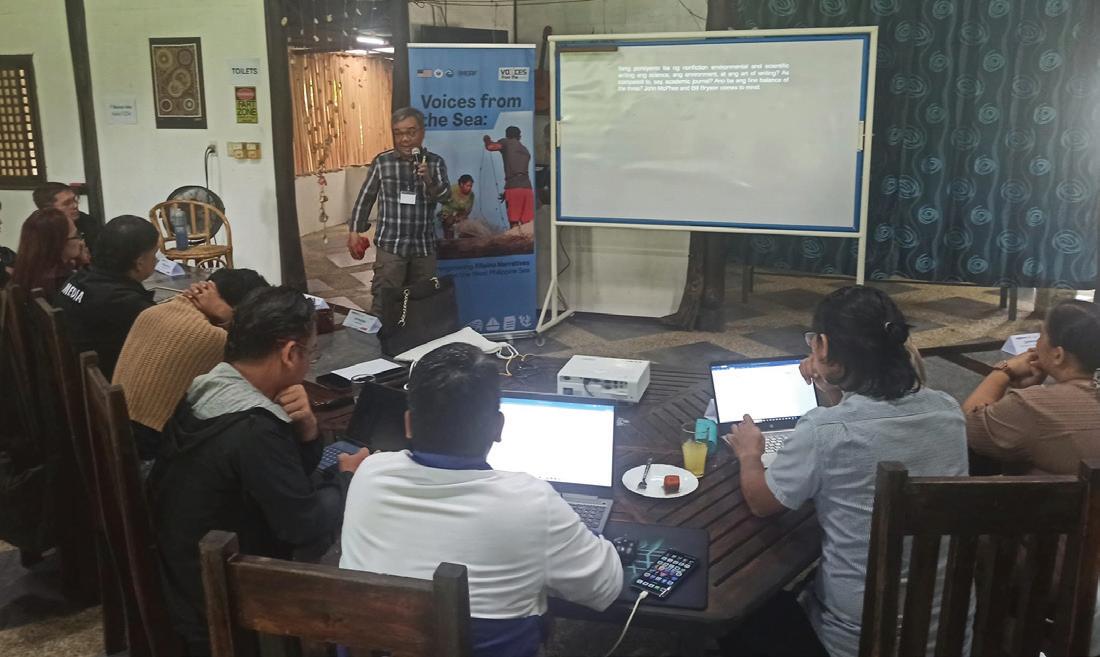 observations into compelling, human-centered stories. The workshop gathered an interdisciplinary roster of mentors, including broadcast journalists Ms. Chiara Zambrano and Mr. Jervis Manahan of ABS-CBN, Esquire editor Ms. Christa Dela Cruz, and marine scientist Dr. Deo Florence Onda, who spearheaded the initiative. Participants engaged in intensive sessions on journalism ethics, environmental reporting, and story production, culminating in field immersions in the coastal barangays of Bagong Bayan and Aporawan, Palawan.