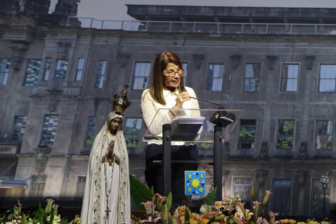 The honoree, Ms. Ma. Lourdes S. Bautista, expressed warm reflections on her 18 years at the University, recalling her years both as a high school and college student, and later as a faculty member pursuing her master’s degree. “This is, of course, a different place now and I am happy to see new buildings and developments. But it is still the UST of my affections,” she said.