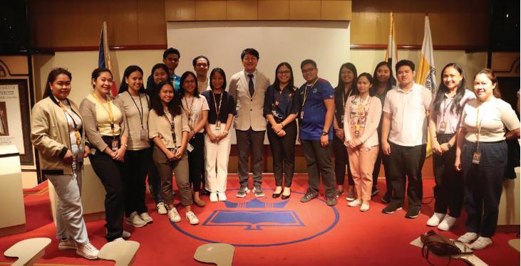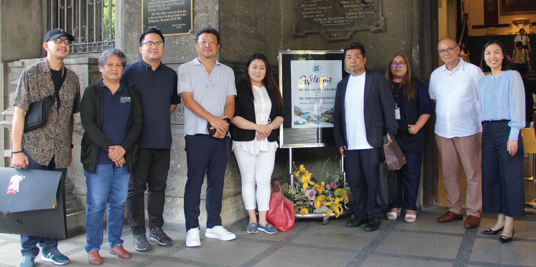 Manga artist Masakazu Iwasaki and Philippine Nikkei-jin Legal Support Center Representative Director Norihiro Inomata (fourth from right) visited the University of Santo Tomas for a meeting with officials of the College of Fine Arts and Design. UST OPA Director Ms. Michaella Lagniton gave them a tour of the campus on May 17, 2024.