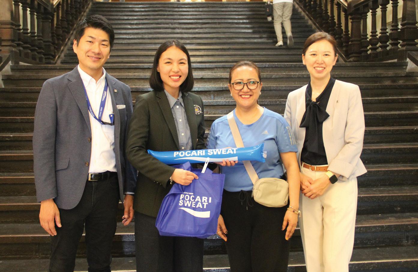 Otsuka Solar Philippines President Mr. Ken Saito (leftmost) and Otsuka Pharmaceuticals Philippines President Ms. Hisayo Nishihara (rightmost) visited the University of Santo Tomas as part of the Faculty of Pharmacy’s health and wellness initiative “UST Rx: Prescription for Wellness–Refresh, Recharge, and Rejuvenate” on May 10, 2024. UST OPA Director Ms. Michaella Lagniton (second from left) assisted Dean Prof. Aleth Therese Dacanay, Ph.D. (third from left), in welcoming the guests.