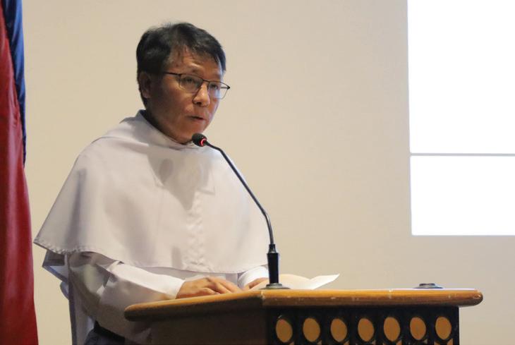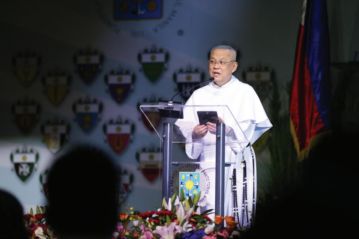 UST Purchasing Office Director and Faculty of Arts and Letters Regent Rev. Fr. George Phe Mang, O.P., leads the invocation and delivers an opening message.
