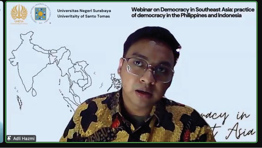 The UST CTHM team, with adviser Asst. Prof. Ang (top right window on projector screen) and Asst. Prof. Mercado (standing, left), during the presentation of the certificate