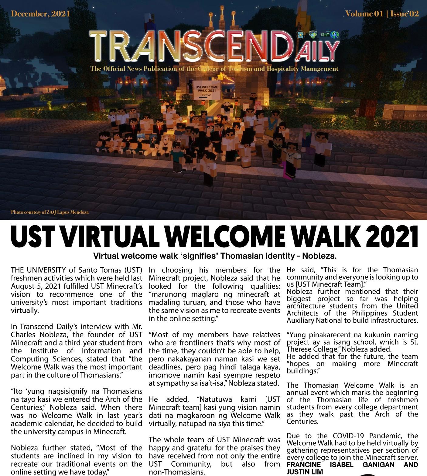 Foranycomments,suggestions,orinquiriesyoumaycontact: transcenddaily.ustcthm@gmail.com This is a publication of UST CTHM Student Council Allrightsreserved