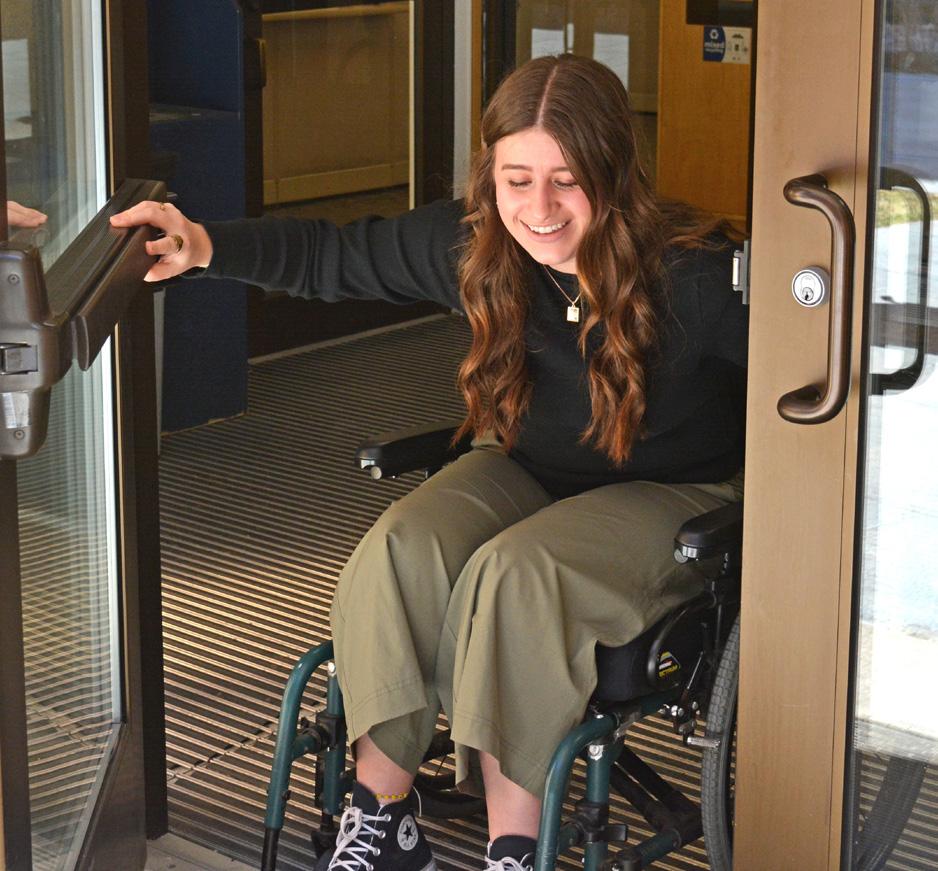 Most doors on campus do not meet the Americans with Disabilities Act (ADA) standard of five pounds of force to open the door, said Heiner. The doors are heavy, and without help, it’s awkward and difficult to enter a building.