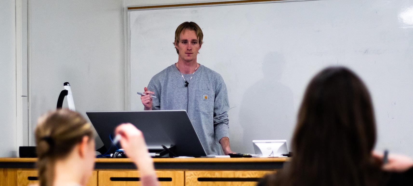 PHOTO BY Heidi Bingham SI instructor Alex Hill teaches his Chem 1220 class in the Natural Resources building on Wednesday, March 22.