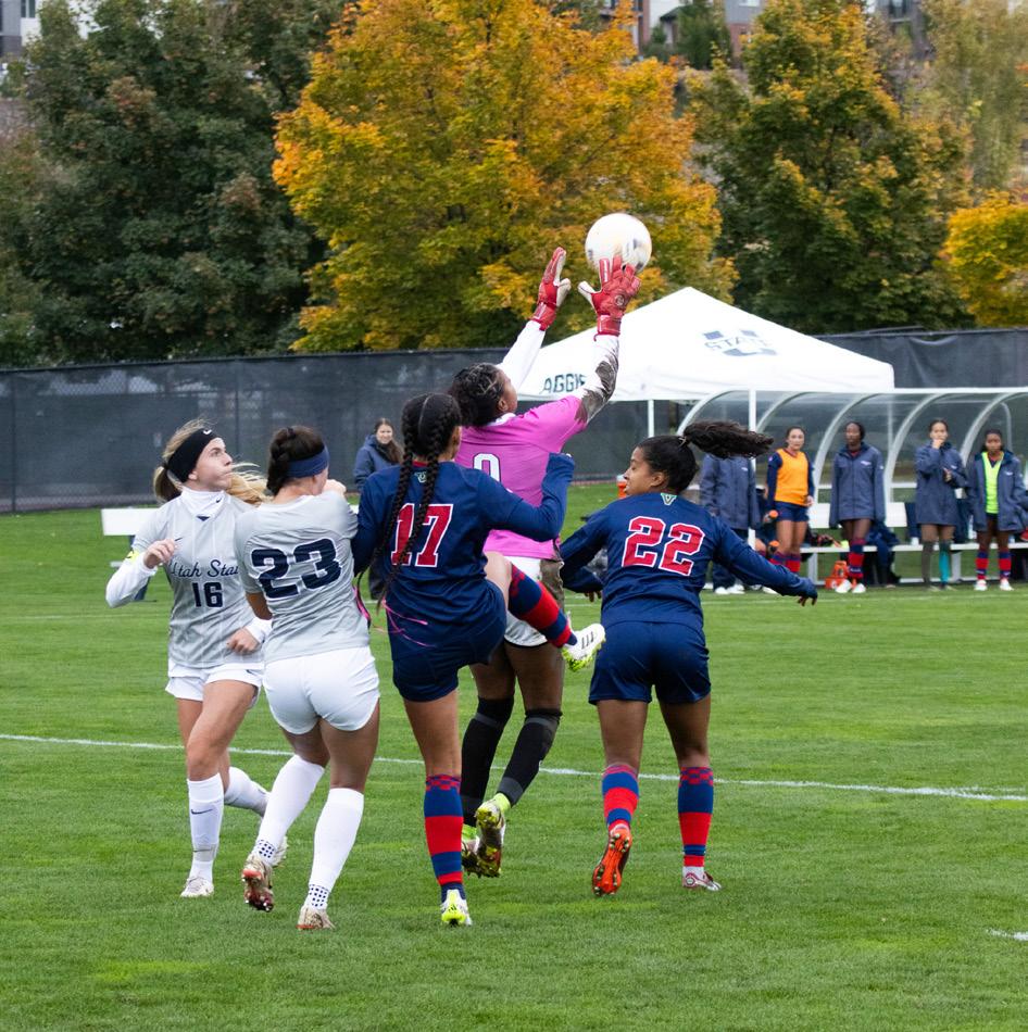 The Utah State women’s soccer team celebrated their seniors with a 2-1 senior day win over the University of Nevada on Sunday, Oct. 12.