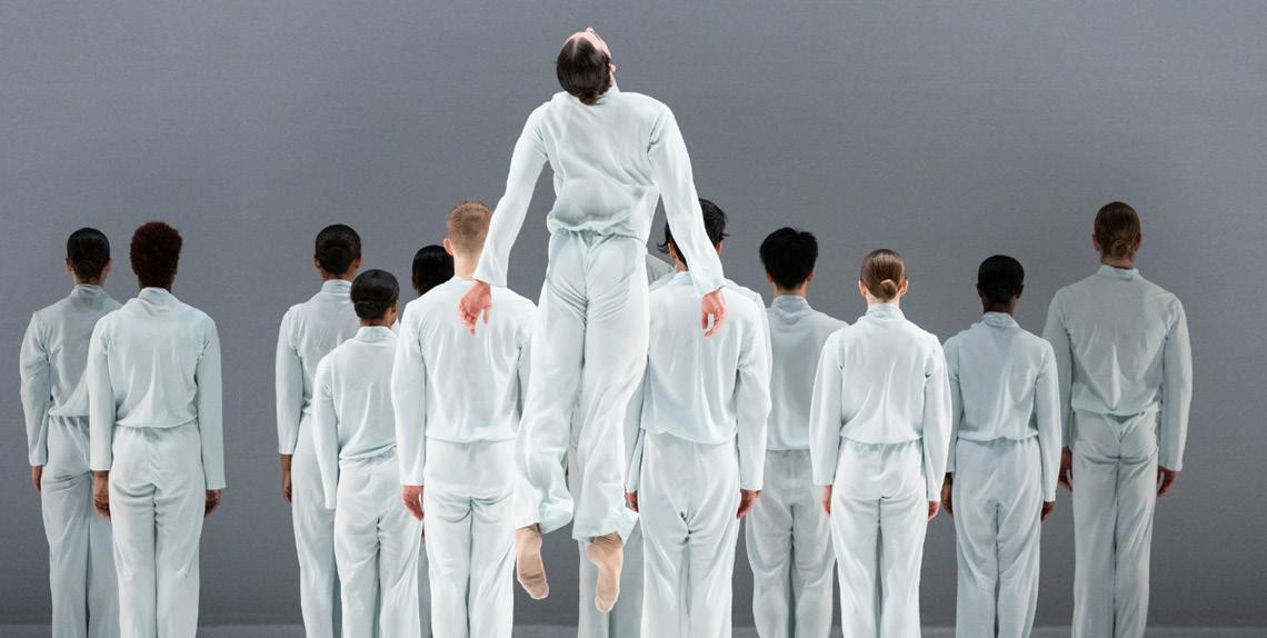 The final dance of the night was “return to patience,” choreographed by Aszure Barton and featuring the entire cast in a white-out costume and stage performance. Completely brightened by the dancers’ costumes, which were created by the Juilliard School in New York, and the white lighting and flooring, this piece highlighted the dangers of conformity and its apparent inevitability in modern society. With disturbingly perfect coordination and each breakout soloist returning to be one of the group, the team came together to produce a beautiful commentary on individualism and what happens when this is lost. At the end, one dancer was highlighted as they tried to emotionally escape this reality, but they again returned to the entire group behind them,