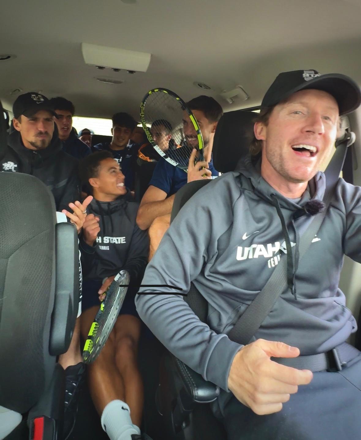 Casey isn’t a coach at USU. He doesn’t live in Logan either. Currently residing in Toronto, Casey flew out for a weekend a couple of months ago to film content with the tennis team.