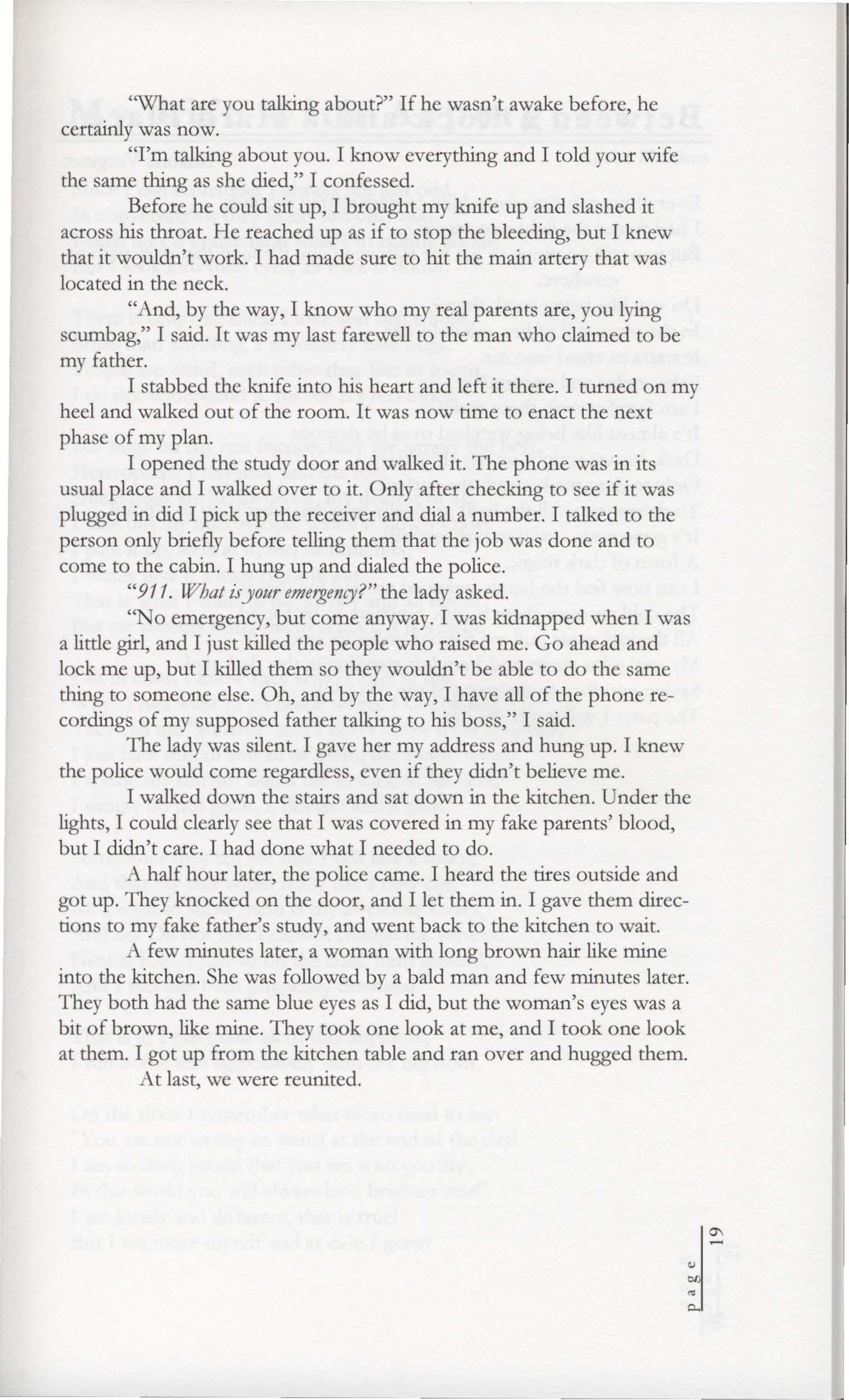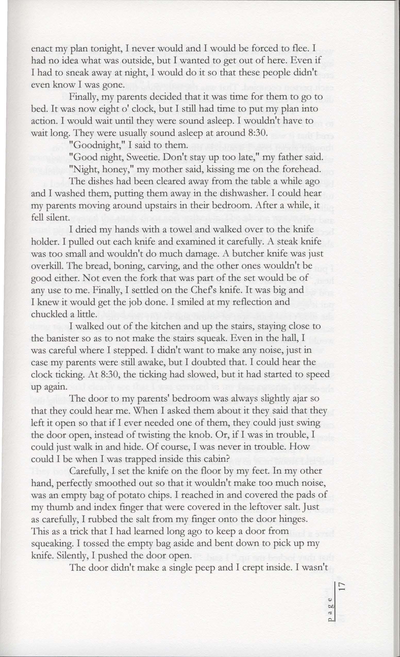McCalle ReillyHer father who stood at the door, He smiled, said "You'll be fine," Shut off the light and plunged Her into darkness.