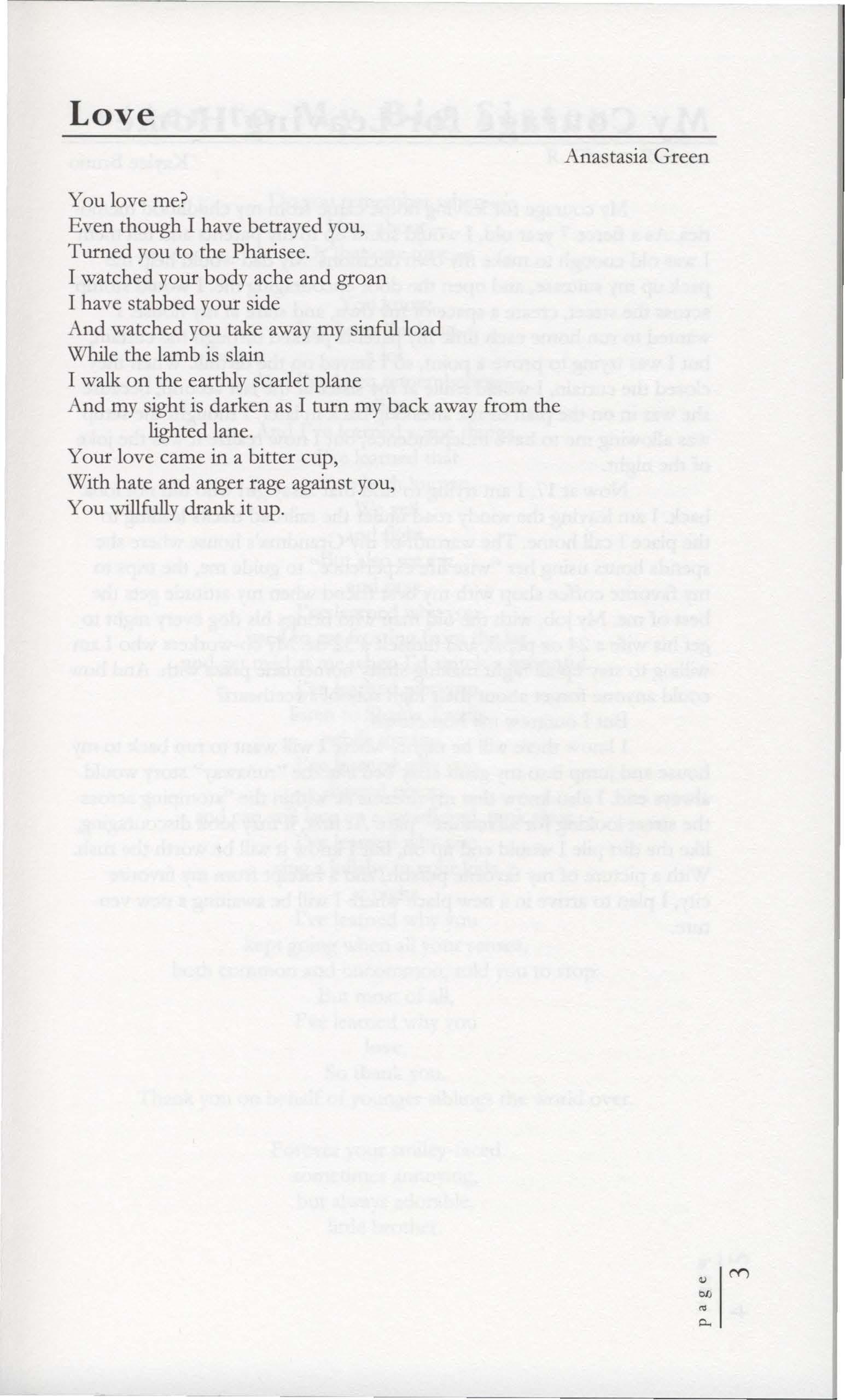 Your love came in a bitter cup, With hate and anger rage against you, You willfully drank it up.
