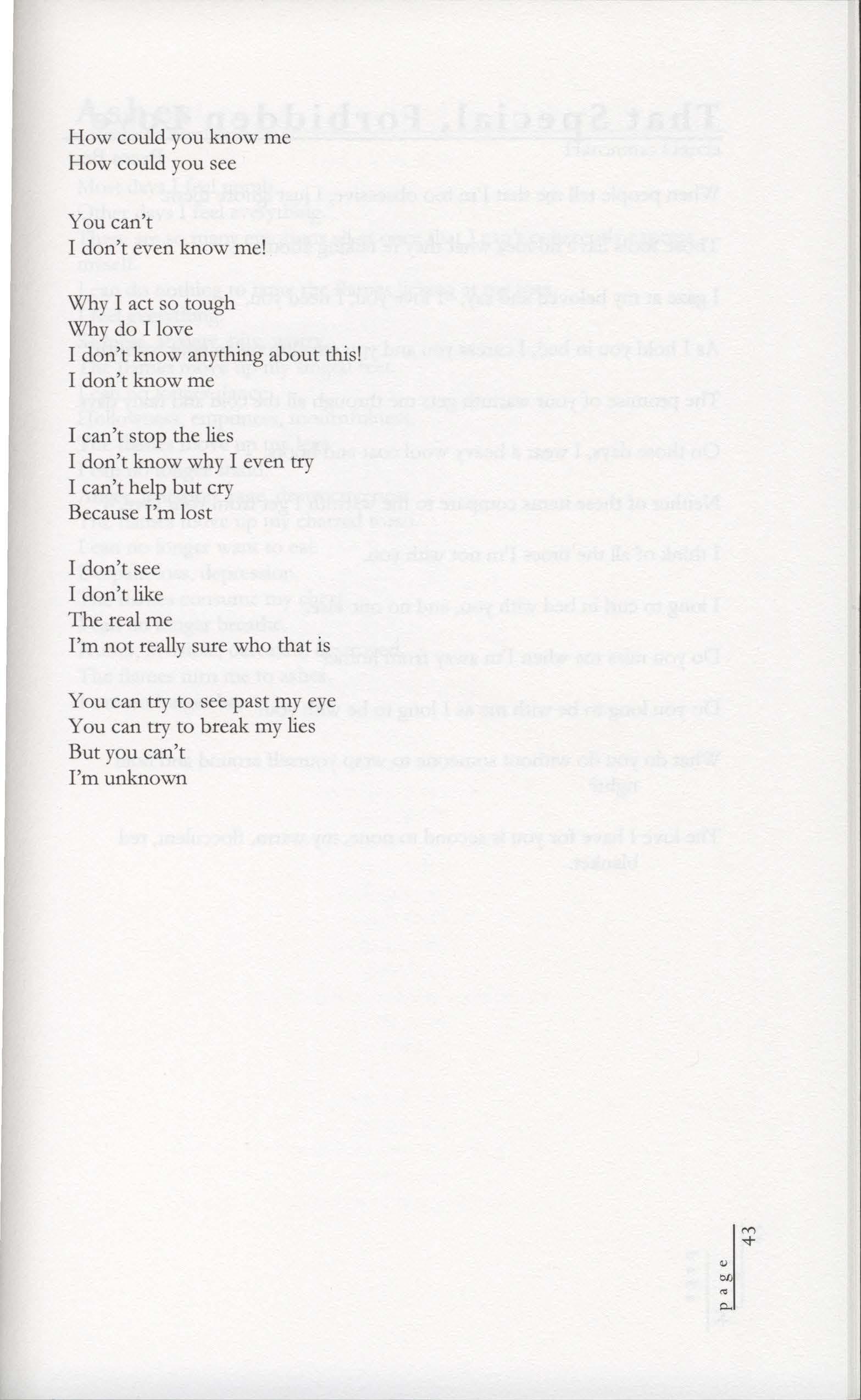 How do I begin to make you understand? What can I say to help you see my emptiness?