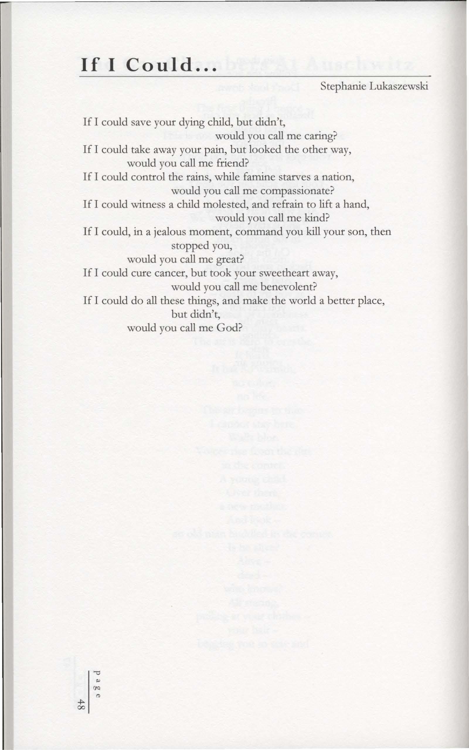 If I could control the rains, while famine starves a nation, would you call me compassionate?