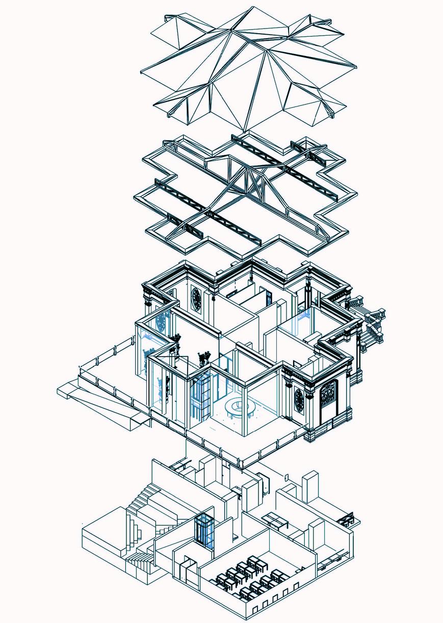 Lo que se busca para la nueva propuesta es respetar la esencia misma del edificio e integrar la forma inicial que este tuvo en planta que fue de una chakana, esta rige la organización del programa. El concepto de Ciudad Jardín dicta las pautas a seguir en el nuevo bloque integrado a esta casa patrimonial.