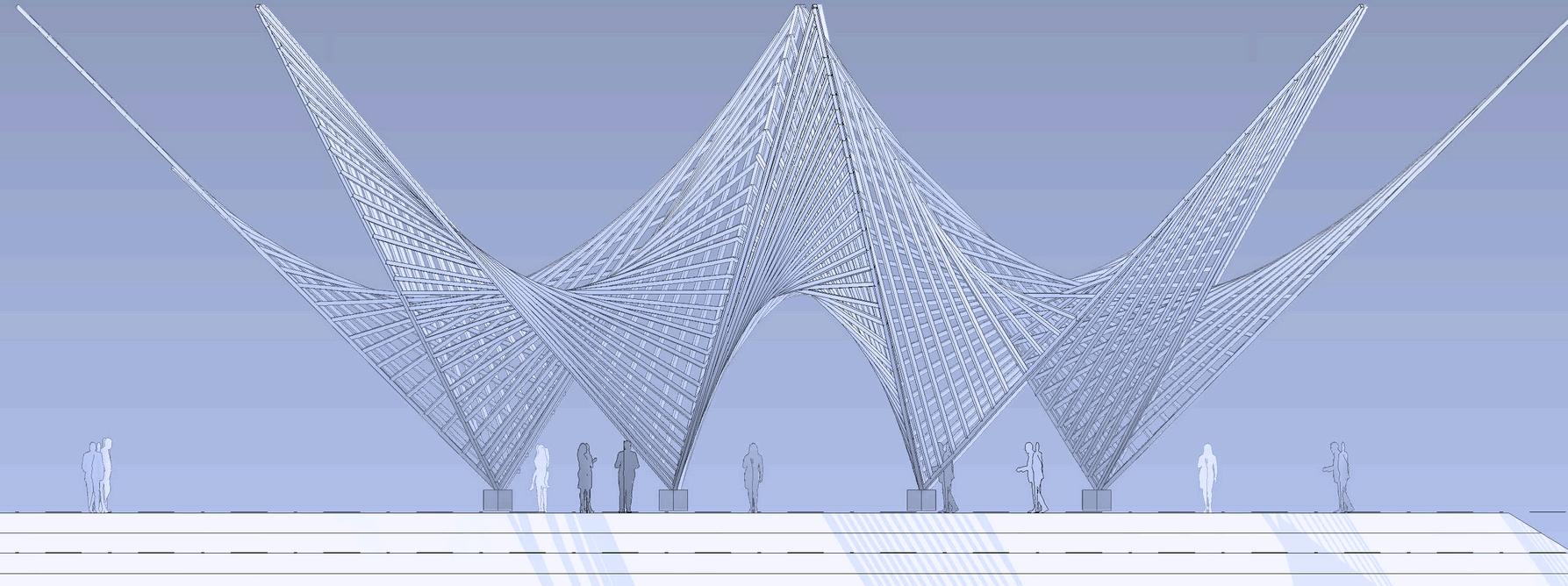 El pabellón presenta el concepto de un “guardia real de los soberanos andes”, acoplándose más como una corona que reposa en el mirador como muestra de respeto hacia las montañas, bosques y volcanes de vieron el surgir e historia de nuestro país.