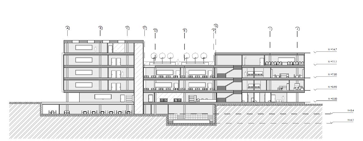 La rehabilitación de la Facultad de Diseño y Arquitectura de la Universidad Técnica de Ambato emerge como un proyecto que fusiona la herencia arquitectónica de Alvar Aalto, con la necesidad de optimizar los espacios educativos. La intervención busca jerarquizar los diversos espacios, logrando que la nueva facultad responda coherentemente al programa arquitectónico. En el proyecto de rehabilitación, la fusión de una arquitectura tectónica se manifiesta de manera notable mediante las gradas externas perimetrales, que no solo funcionan como elementos estéticos, sino que también fomentan la interacción social y la conexión con el entorno Además, la inclusión de espacios subterráneos revela la estereotómica, destacando la exploración de formas y materiales que añaden profundidad, tomando en cuenta las condiciones de cierre, como la malla metálica del frente y las claraboyas estratégicamente ubicadas en los pisos superiores, demuestra una integración con el programa arquitectónico. Estos elementos no solo controlan la entrada de luz según la ubicación y uso de cada espacio, sino que también invitan a los usuarios a habitar plenamente las áreas, creando así un ambiente dinámico y funcional.