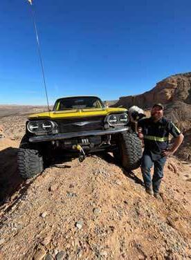 You know you can get something like a five-ton military truck and pull RVs out with no problem, but it won’t go on one of those trails. But I get something like the Banana (a bright yellow 2001 Jeep Cherokee) or the Moorvair (a bright yellow 1961 Lakewood Wagon) that will do those tight technical trails like a dream. And then you put them out on the beach and took two of them together to try to pull the RV and you got to call a third Jeep and to help you do it. So, I am pushing myself to be able to build a vehicle like that. For me, that’s where that’s at.