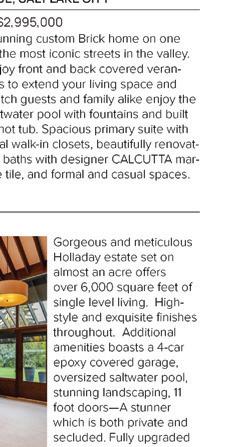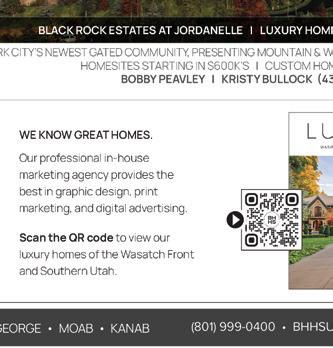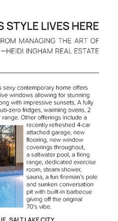Th is edition’s featured spaces are the perfect representation of that rich variety. Within this edition, you’ll fi nd quite the spread: A dreamy teen bedroom in Holladay inviting garden-inspired charm indoors (page 68), a design-driven landscape remodel in Millcreek defi ning modern simplicity (page 58) and an idyllic lakeside estate in Eden transporting visitors to a bygone era with unique construction (page 96). You’ll also discover a Deer Valley home encapsulating luxury mountain living (page 106), a high-style Park City ranch property delivering unexpected metropolitan chic design (page 86) and down south, a Sand Hollow residence showing off the colors and textures of St. George’s distinctive landscapes (page 76).