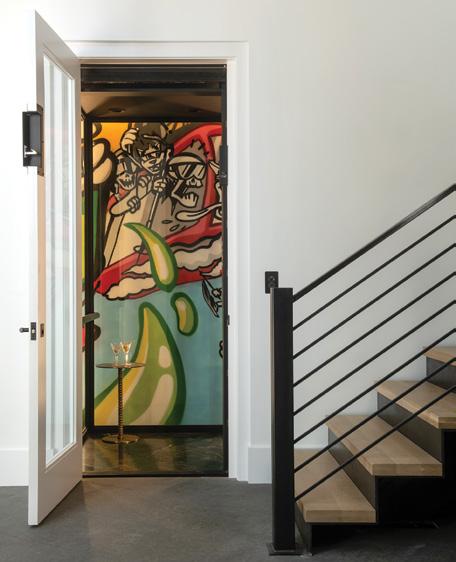 Photographer: Rebekah Westover, rebekahwestover. com; Interior Design: The Flairhunter, Park City, theflairhunter.com, and Hughen House, Park City, hughenhouse.com; Builder: J. Ford Construction, Park City, jfordhomes.com; Architect: JSARC Architects, Park City, jsarc.net ; Styling: Noelle Wright, @noellewrightstyles; Hardwoods: Signature Floors, SLC, signaturefloors.com; Cabinetry: Swirl Woodcraft, SLC, swirlwoodcraft.com; Stone: European Marble & Granite, SLC, europeanmarbleandgranite.com; Plaster: Marrwall, marrwall.com; Steelwork: Lightning Forge, Murray, lightning-forge.com; Fireplaces: Alpine Fireplaces, Lehi, alpinefireplaces.com; Entry Door: Vision Makers, Sandy, visionmakersintl.com; Elevator: A+ Elevators, SLC, apluselevators.com; Elevator Shaft Graffiti: Champ Styles, Tempe, champstylesarts.com; Butcher Block Counters: John Boos, johnboos.com; Stairwell Art: Nicholas Wilton via Julie Nester Gallery, Park City, julienestergallery.com; Lighting: Allied Maker, alliedmaker.com, CU29, cu29company.com, John Pomp via John Brooks, Inc., SLC, johnbrooksinc.com, Giopato & Coombes, giopatocoombes.com, and Seimon & Salazar, seimonandsalazar.com; Tile: New Ravenna via Bella Tile, Park City, bellatileandstone.com,Cement Tile Shop, cementtileshop.com, and Opustone via Earth Elements, Park City, earthelements.com