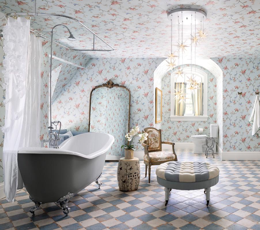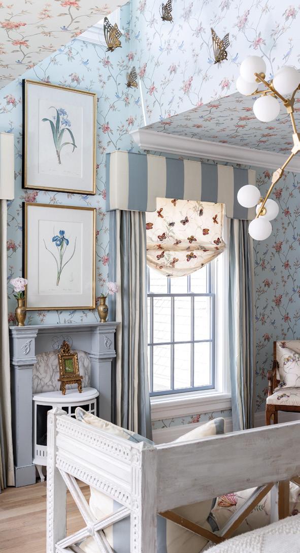 Photographer: Shelby Bourne, shelbybourne.com ; Interior Design: The Fox Group, Holladay, thefoxgroup.com ; Lighting: The Bright Group, thebrightgroup.com ; Tile: Arto, arto.com ; Wallpaper: The Fox Shop, Holladay, thefoxshop.co; Pillow and Chair Upholstery: Pierre Frey, pierrefrey.com ; Canopy Bed Fabric: Schumacher, schumacher.com ;