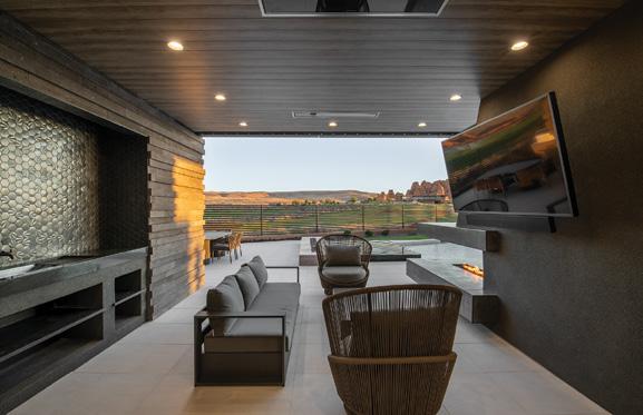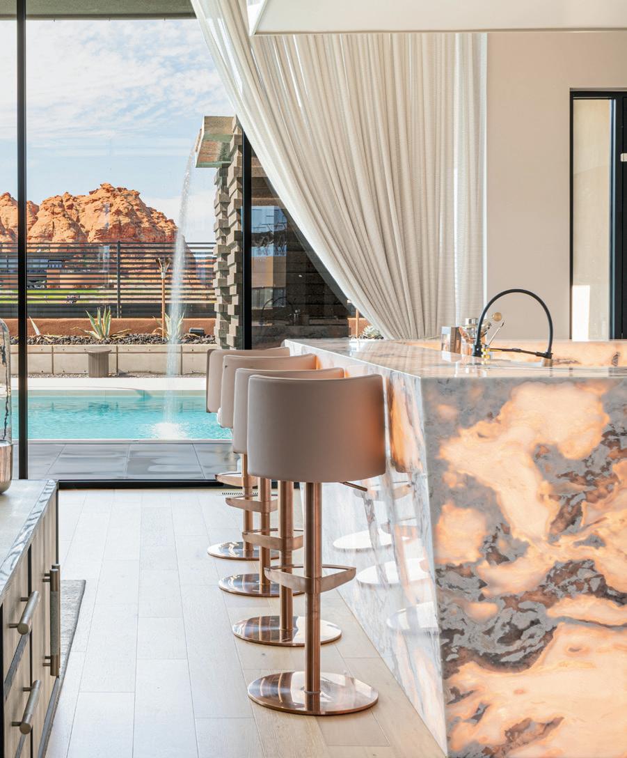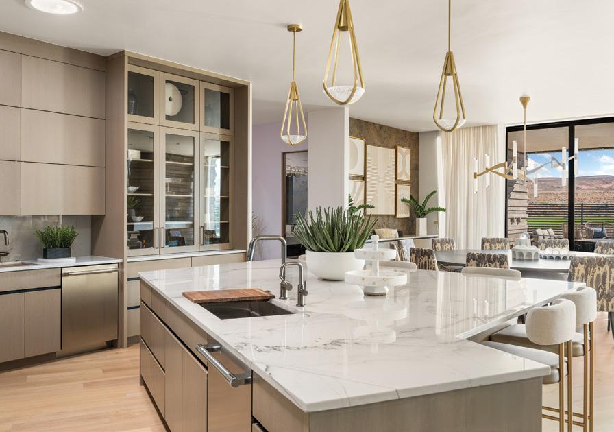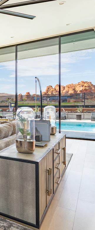 Photographer: Jesse Garrett and Steve Swenson, Any Space Media, @steve_swenson_any_space_media; Interior Design: Julia Roberts, HüGA Home, Santa Clara, hugahomedesign.com; Builder: Wayne Anderson, Anderson Custom Homes, St. George, andersoncustomhomesinc.com; Architect: Rob McQuay, McQuay Architects, St. George, mcquayarchitects.com; Appliances & BBQ: Thermador supplied by Mountainland Design, SLC, mld.com; Cabinetry, custom bunks and interior doors: Riverwoods Mill, St. George, riverwoodsmill. com; Closets, Gun Safe and Laundries: Closet Creations, St. George, closetcreationsut.com; Countertops and slab work: Renaissance Fabrication, St. George, renfabstg.com; Flooring and tile materials: HB Flooring Solutions, St. George, hbflooringsolutions.com; Tile Installation: Band of Brothers Construction; Visual Comfort and Hubbardton Forge light fixtures: Wilkinson’s House of Lighting, St. George, shopwilkinsons.com; Pool and Landscape: Cutting Edge Pools and Landscape, St. George, cuttingedgepools.com; Decorative metal work and entry door: Funder Welding & Design, Enoch, fundercustoms.com; Plumbing fixtures: Delta, Brizo, and MTI via Ferguson Kitchen and Bath, SLC, fergusonshowrooms.com; Pavers: Strong Rock Pavers, Provo, strongrockpavers.com; Interior Glass & Mirrors: Mark Singleton of Desert Star Glass, St. George, desertstarglass.com