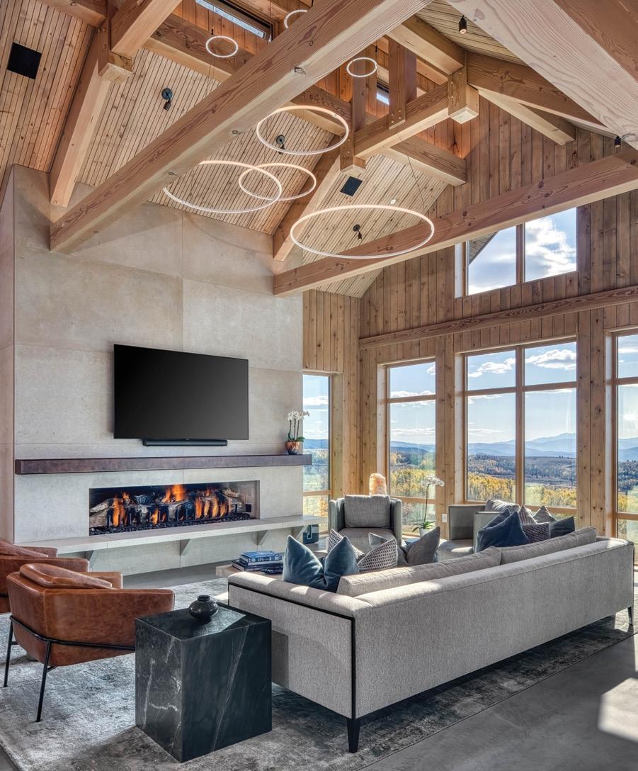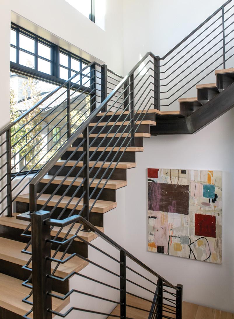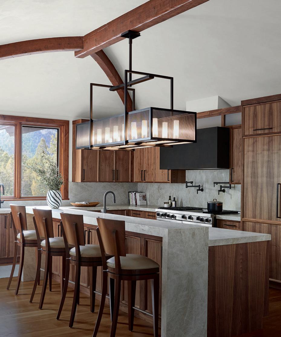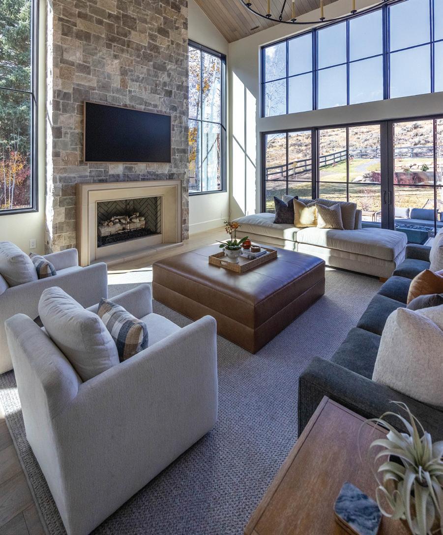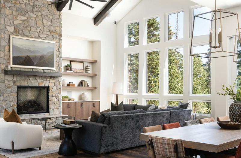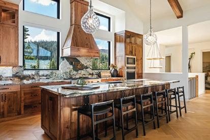 Photographer: Lindsay Salazar, lindsaysalazar.com ; Building Design: Derek Mecham Design, Ogden, dmechamdesign@gmail.com ; General Contractor: Ogden Valley Homes, Ogden, ogdenvalleyhomes@ gmail.com ; Interior Design: Iris and Emily, Ogden, irisandemily.com , and Lauren Oviatt Inc., Ogden, laurenoviatt.com ; Landscape Design: Io LandArch, Ogden, iolandarch.com ; iCLT Timber and Engineering: Euclid Timber Frames, Heber, euclidtf. com ; Cabinet Design: Christopher Scott Cabinetry and Design Inc., SLC, christopherscottcabinetry. com ; Stone Mason: Evensong Masonry, Plain City, @ evensongmasonryart ; Circle Sawn Floorboards: Robinson Sawmill, Mountain Green; Mill Work: Ellis Planing Mill, Ogden, ellisplaningmill.com ; Custom Furniture: Jock Jones, Springfield, jockjones.com