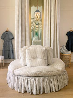 “I believe in the power of a small print—it can function almost like a calming solid,” Taylor says. Zwick plans to introduce new custom prints annually to keep the look evolving.