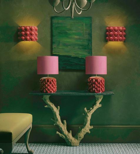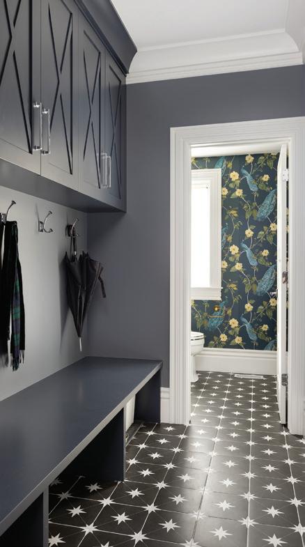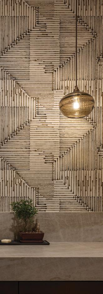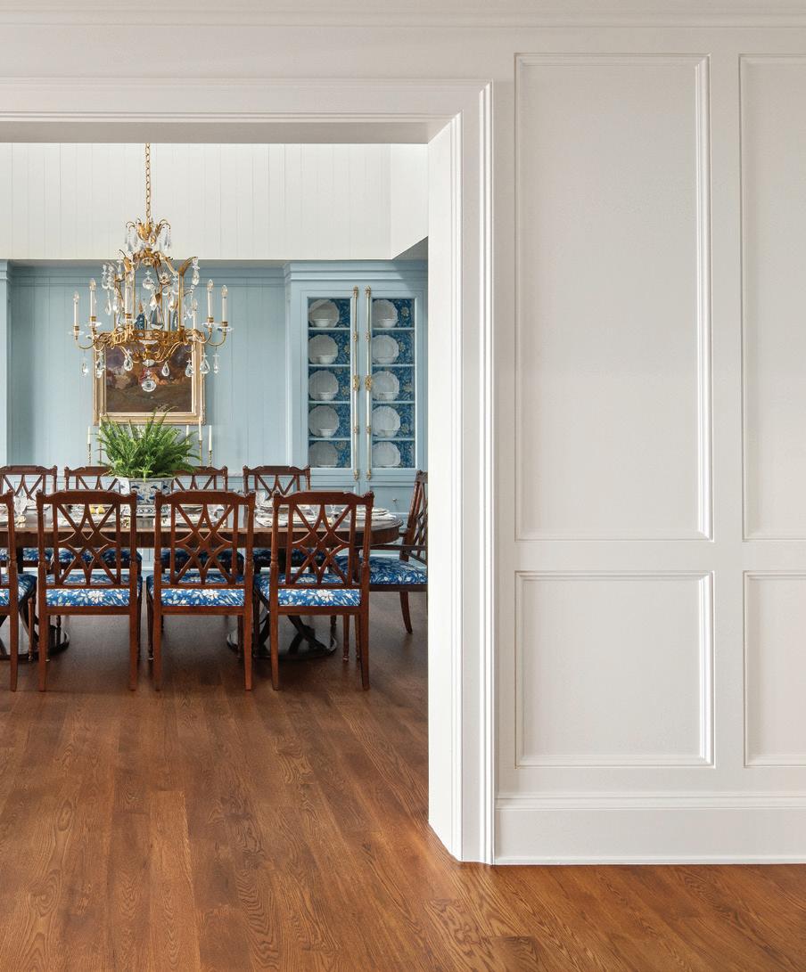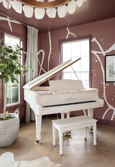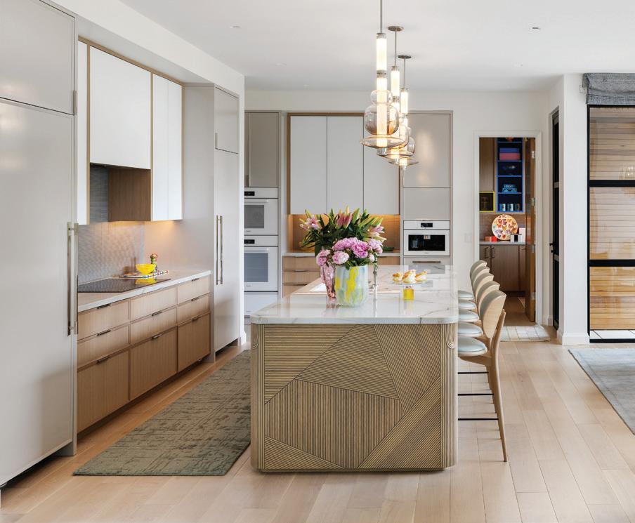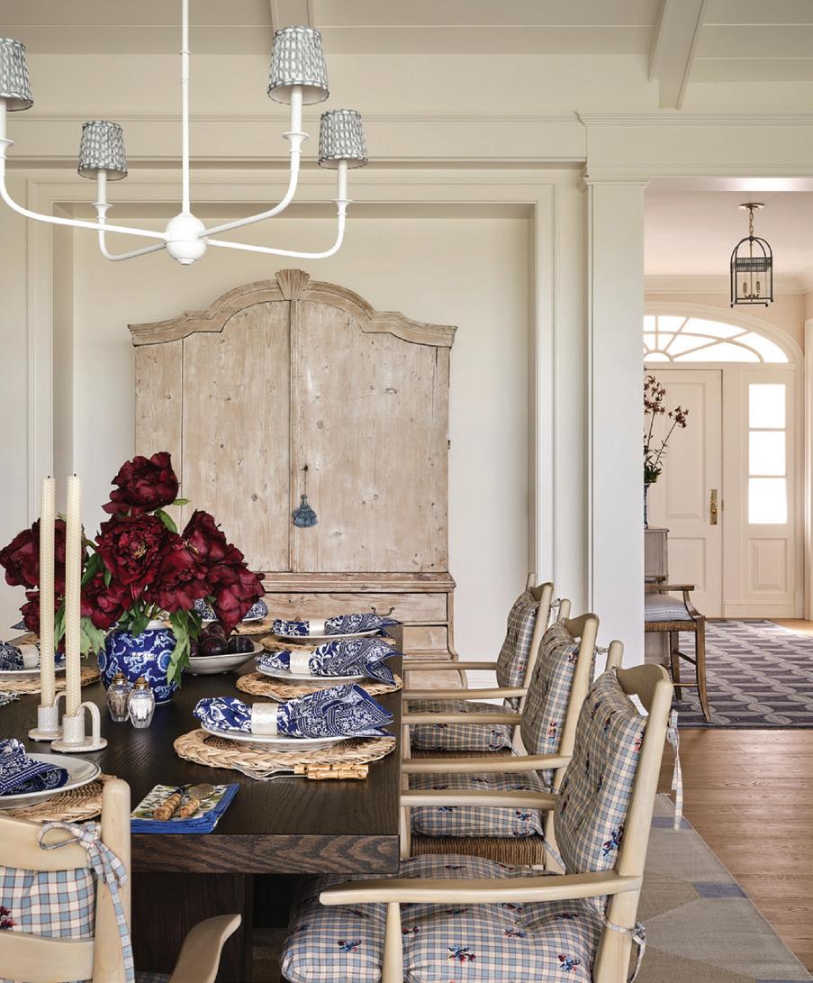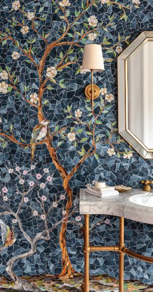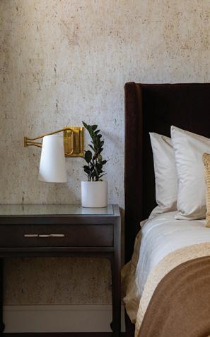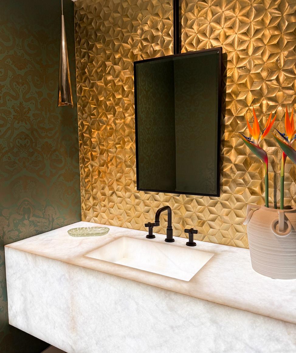 An enchanting, Austrianinspired atmosphere defines The Hirsch at Goldener Hirsch by Auberge in Deer Valley. Designed by Liubasha Rose, the dining room is wrapped in hand-painted Salzburginspired wallcovering, anchored by alpine-blue banquettes. Rustic tradition meets playful irreverence in this pattern-forward chalet, where every element nods to Rose’s European childhood: from forests and foraging to whimsical woodland characters. auberge.com/goldener-hirsch/dine/