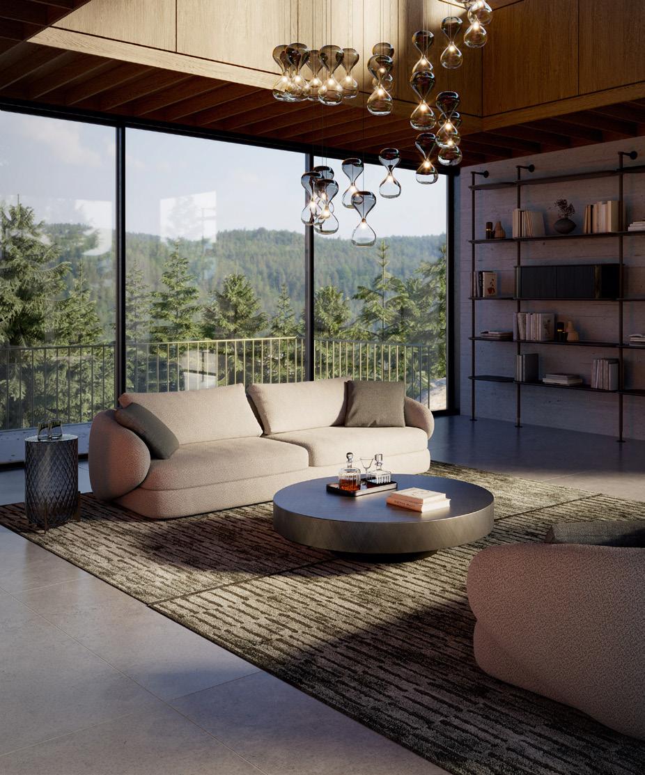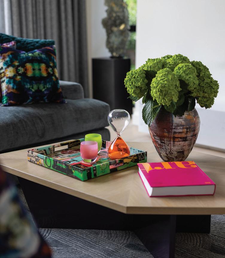 quiet and considered, allowing the architecture, interior focal points and surrounding landscape to coexist without competing for attention,” she explains.