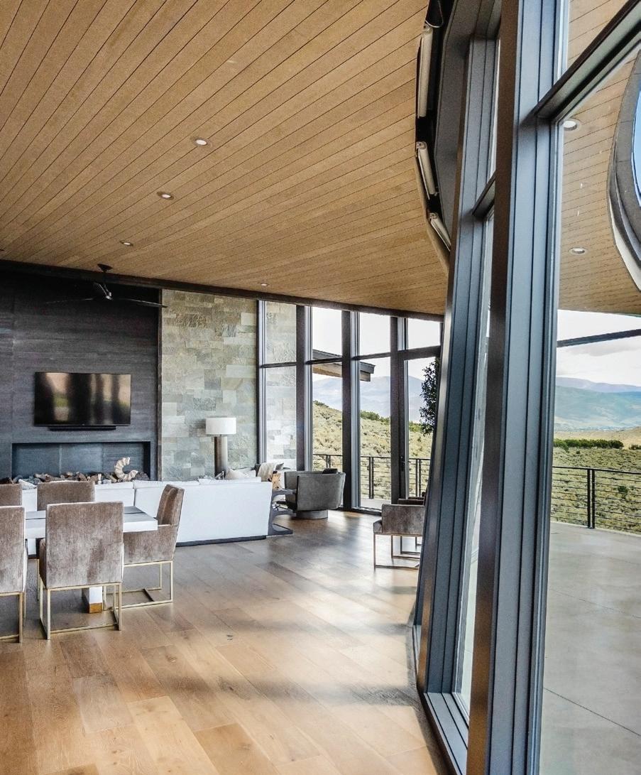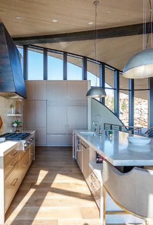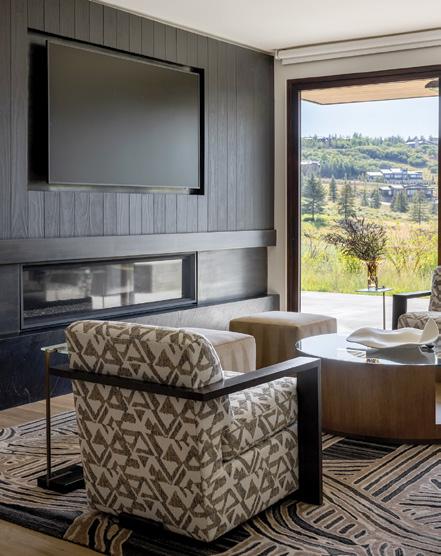 TTHERE ARE MANY THINGS ABOUT THIS UTAH MOUNTAIN HOME TO OBSESS OVER. There’s the location: nestled into the folds of Tuhaye’s rolling terrain, the house is oriented to capture sweeping views of the Wasatch Range and the Talisker Club golf course. There is the architecture—designed by Michael Upwall of Upwall Design, it is defined by sweeping curves, angled planes and walls of glass that draw the landscape inside. And there are the layers of furnishings and finishes that create the richly textured interiors for which interior designer Allison Campbell is known.