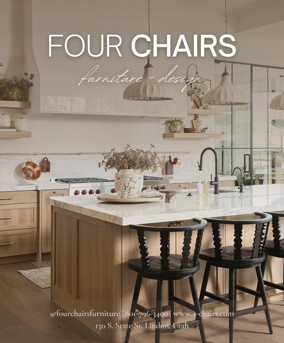 In Sandy, a dated home gets a full indoor and outdoor refresh in “Open and Inviting” (p. 56), while in Millcreek, a 1970s gem takes a stylish step into the modern age in “Modern Treehouse” (p. 78). A glittering Deco-inspired home dazzles in Salt Lake City (p. 68), architecture sweeps the mountain landscape in Tuhaye