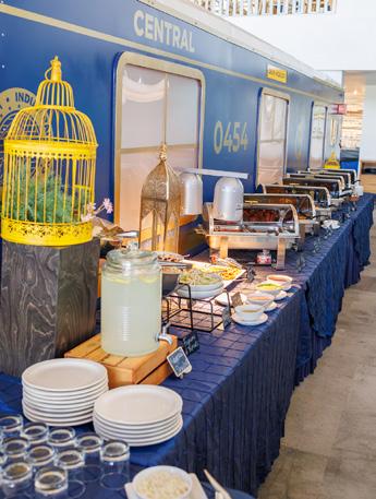 Designed by Mahate herself, the unique dining concept—complete with a train schedule menu board, replica Chennai station clock and banquette seating constructed around a cobalt-blue train car—went from vision to reality in just 45 days.