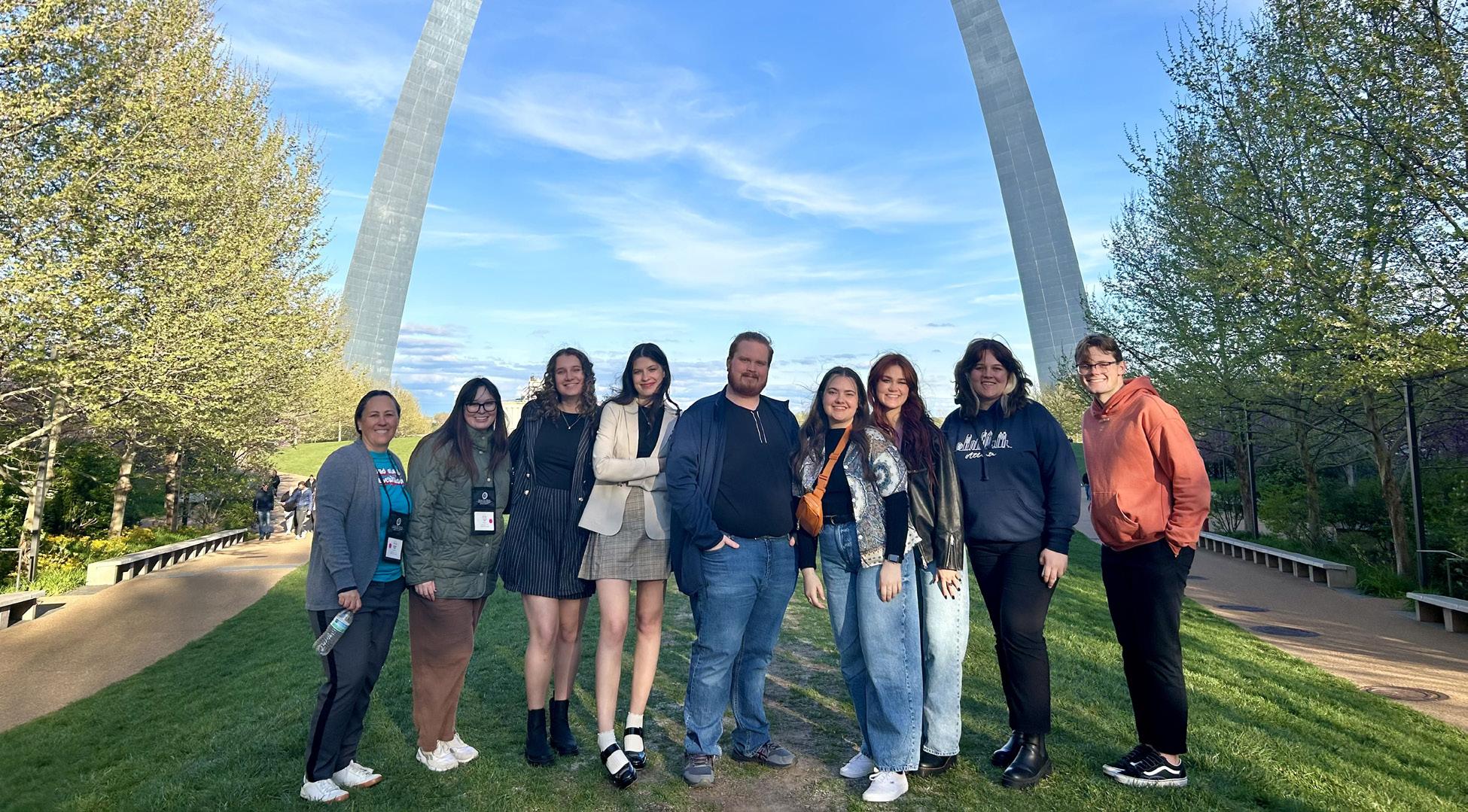In April 2024, ten English students and two faculty had the opportunity to travel to St. Louis, Missouri, to present their research at the Sigma Tau Delta Centennial Convention alongside peers from across the country. Each of these students is a member of the international English honor society, which is dedicated to furthering the conversation on language, literature, and rhetoric. At the convention, students presented papers to audiences of their peers, shared their research at roundtables, attended workshops, and had the opportunity to listen to Donika Kelly, an award-winning poet.