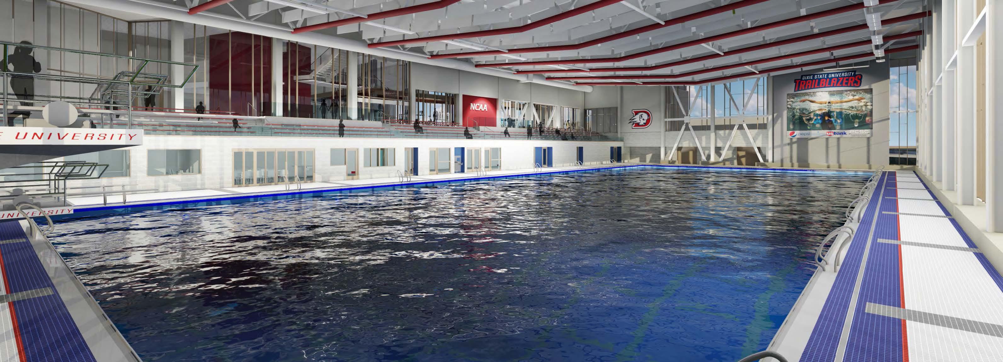 The Human Performance Center’s aquatic center will be the only NCAA-certified swimming and diving competition space in Southern Utah and only the second in the state. The space will include a 50-meter swimming pool, four lockers rooms (two male, two female), a diving well, and audience seating for 750.