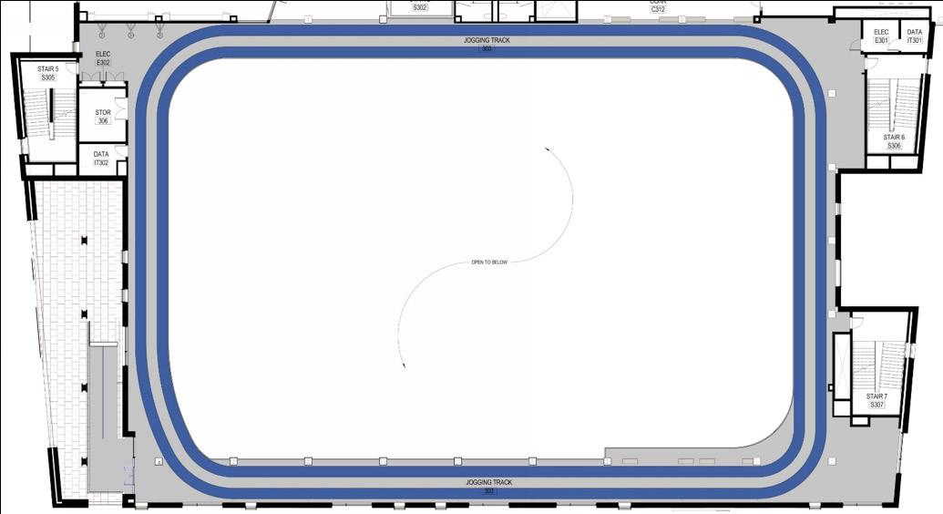 The Human Performance Center’s third-floor gymnasium complex will be home to Dixie State University’s nationally award-winning intramural program. Basketball, netball, volleyball, indoor soccer, aerobics classes, and a variety of other activities will make this area one of the most used of the building. The space will include three full-sized basketball courts as well as an elevated running track.