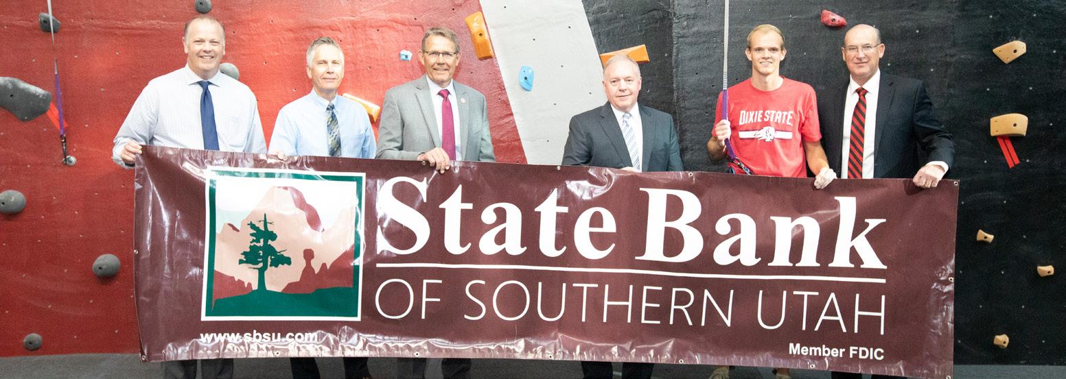 State Bank of Southern Utah donated to the climbing wall in the HPC, the largest climbing wall on any university campus in the state of Utah.