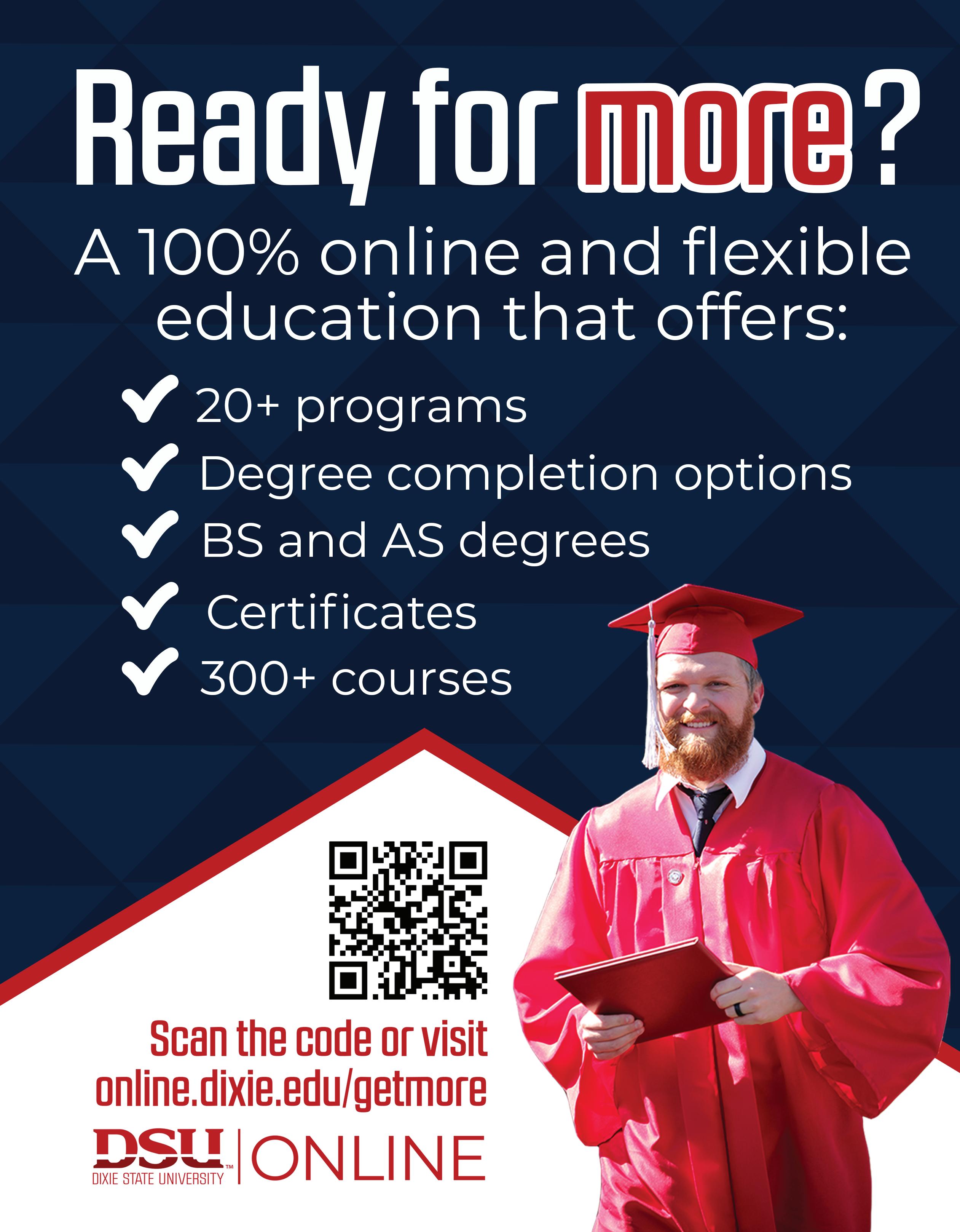 Learn more about DSU’s mission and values by visiting about.dixie.edu or scanning the QR code.