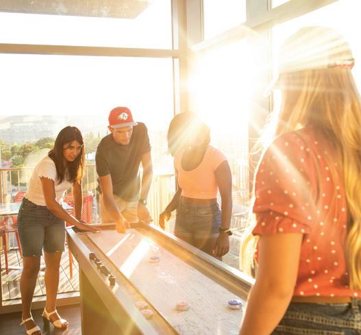 Across campus, the new student housing complex almost doubled the number of students living on campus. Suites feature shared kitchenettes and living space as well as a variety of bedroom options. Additionally, the facility includes a large courtyard, pickleball courts, an outdoor hammock garden, a fitness room, lounges, and community kitchens.